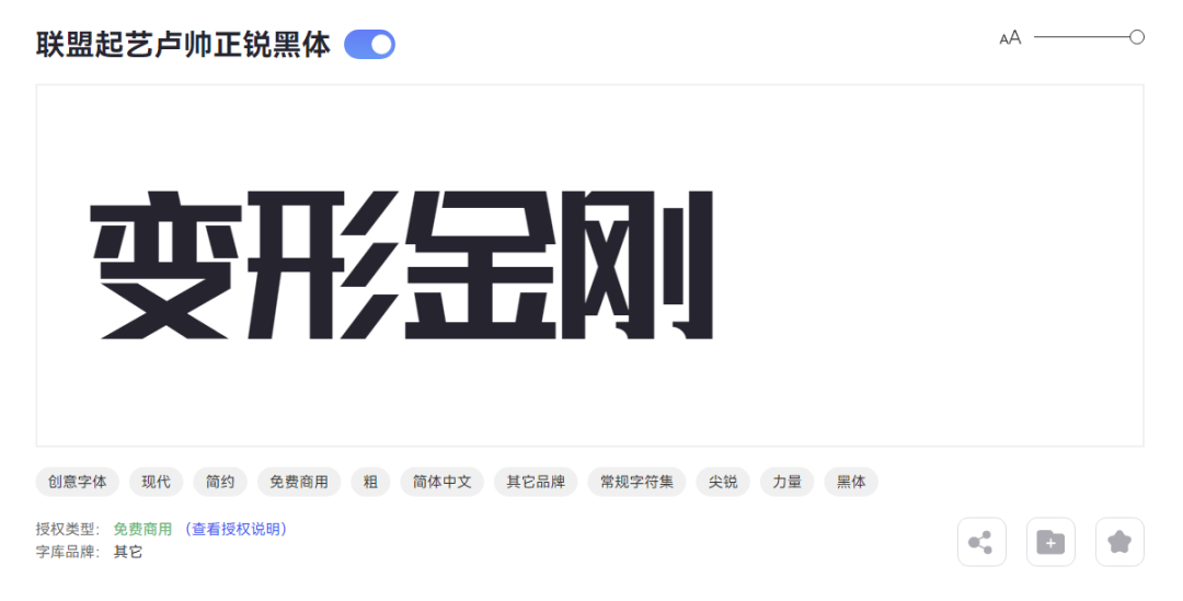 最后一款,你可能都不相信它是免费字(联盟起艺卢帅正锐黑体),但它坚硬的字形,确实更适合变形金刚。