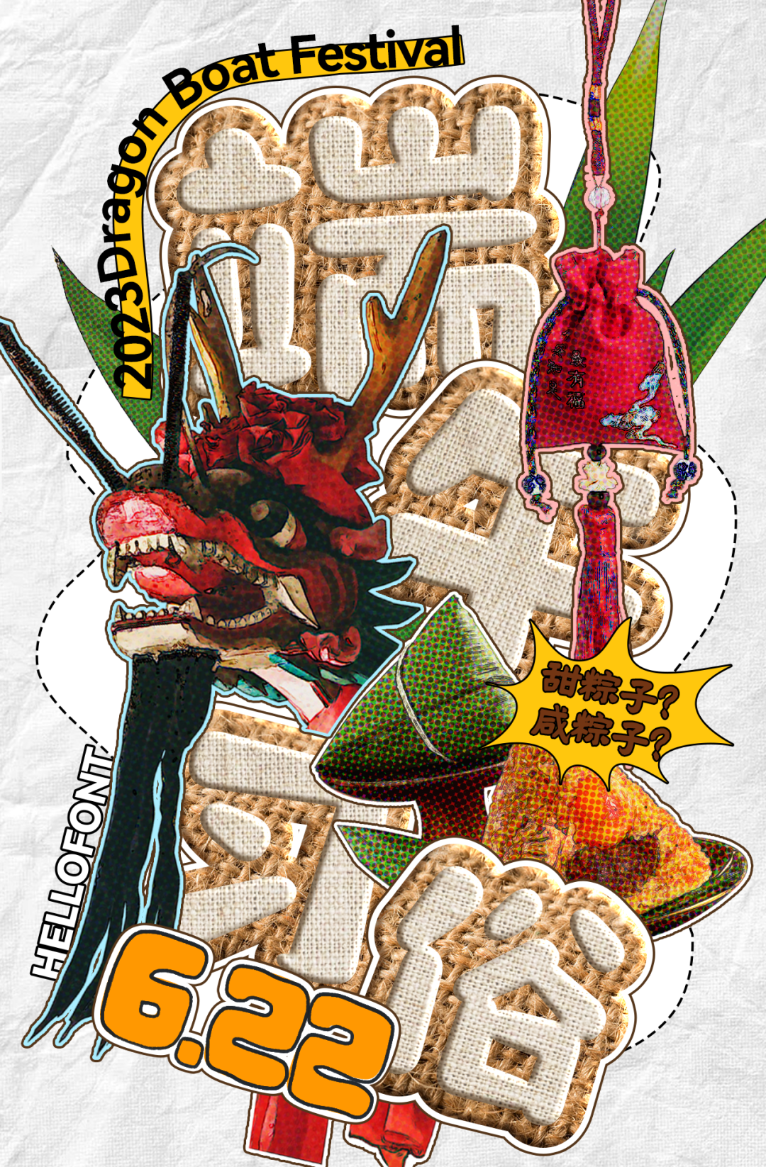 再有就是赛龙舟和挂艾草了,点字佳楷端正的字形和微有棱角精致的轮廓也太适合节日海报了~