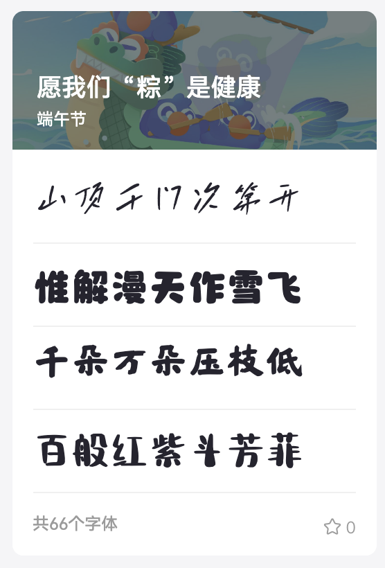 吃货眼里的端午最重要的就是粽子咯~蜜枣粽,豆沙粽,蛋黄肉粽……你别说你还真别说,点字凝光手书真有那种“匠心50年,专业做粽子”的味道,又发现一个隐藏款美食海报适用字~😁