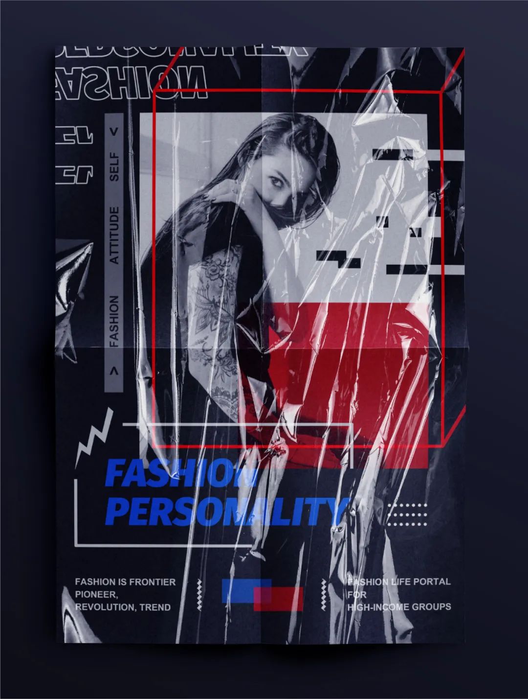 我们本次设计我选用了以下四个手法,同时画面我准备设定为暗色调,最后叠加一个塑料质感。(关于这个塑料质感我要多说几句,前几年这种还比较流行,今年开始塑料质感明显开始不太好用了,这里的演示步骤大家简单看到没加质感之前就可以,如果喜欢的可以自行添加)