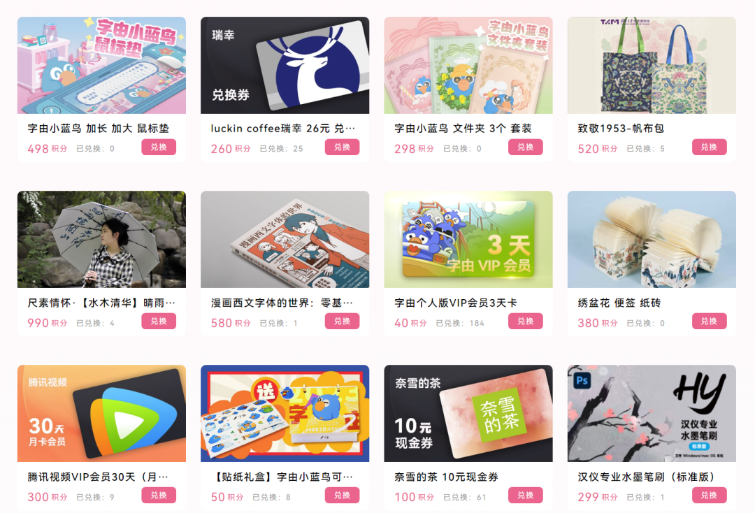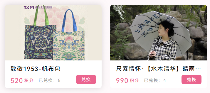 除了字由的衍生品,积分商城还有很多其他品牌的周边,比如清华大学艺术博物馆X博物馆奇妙夜的: