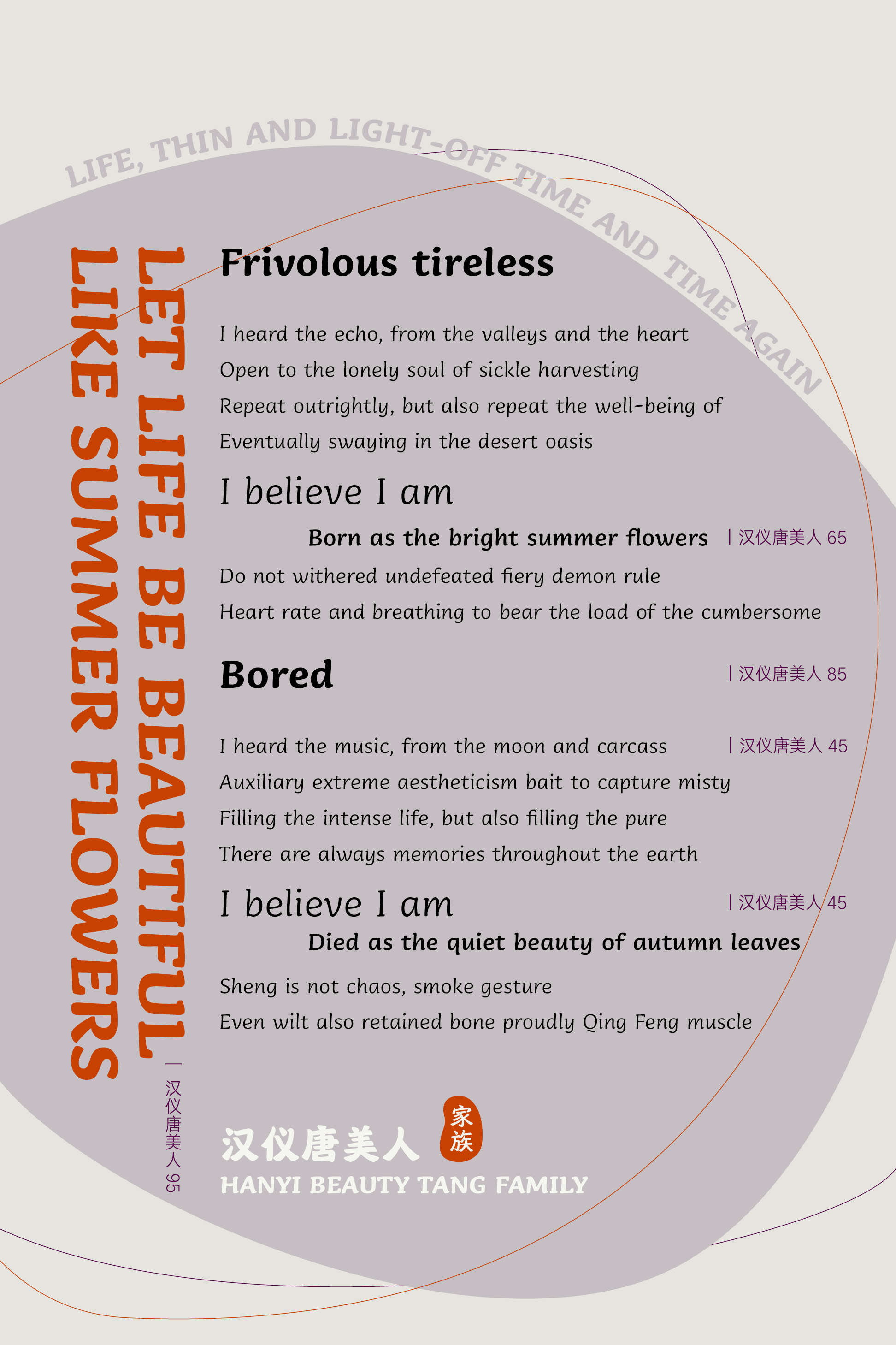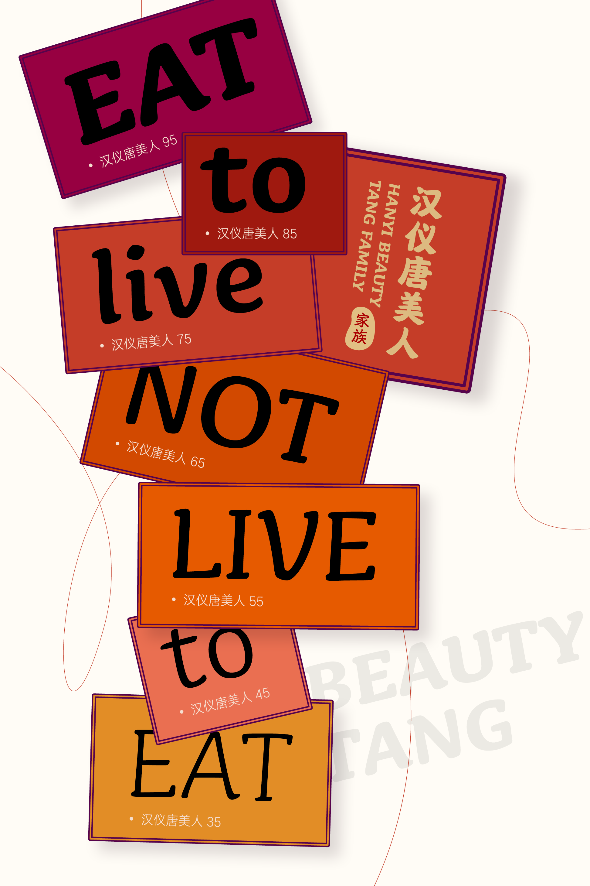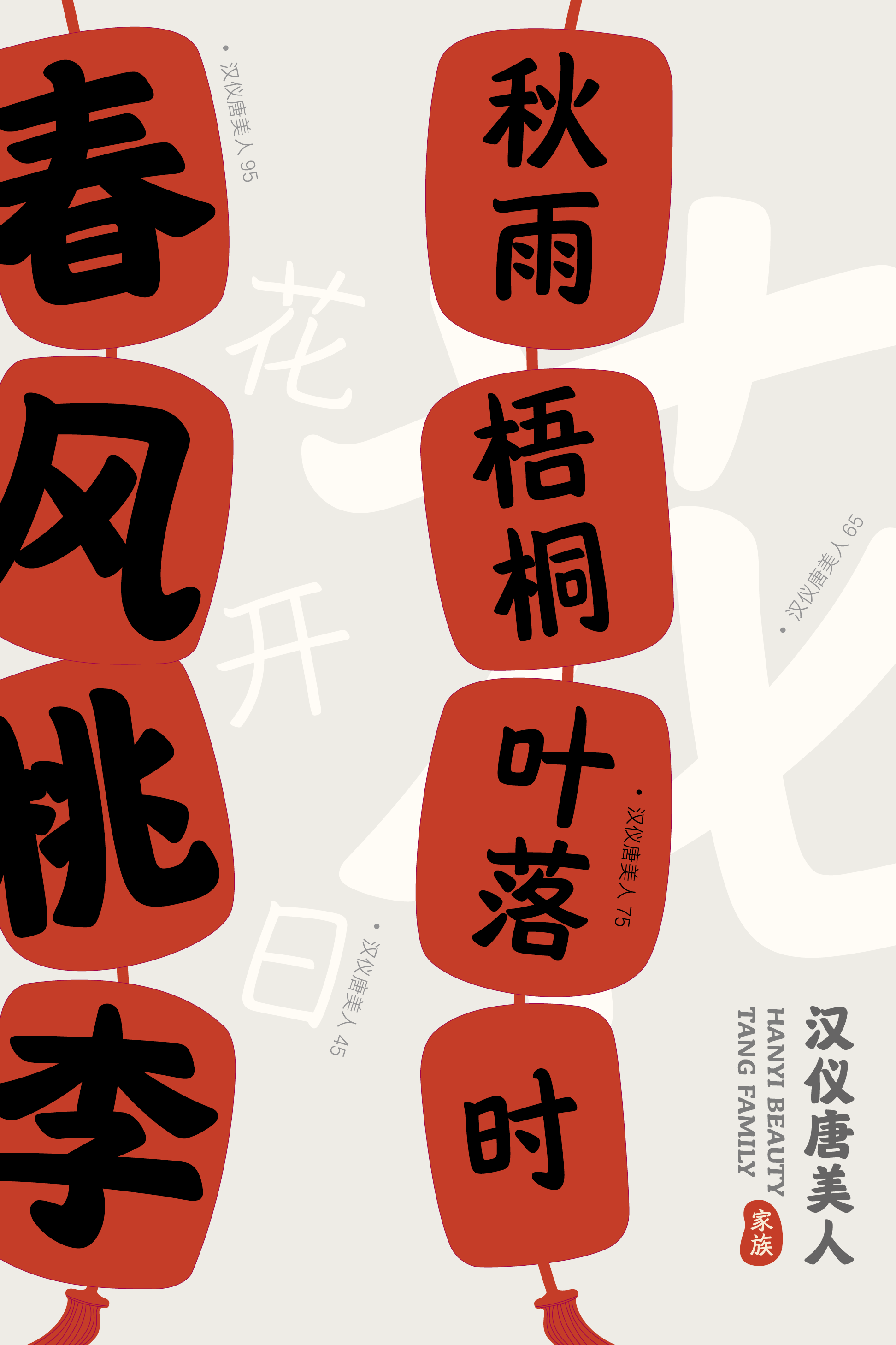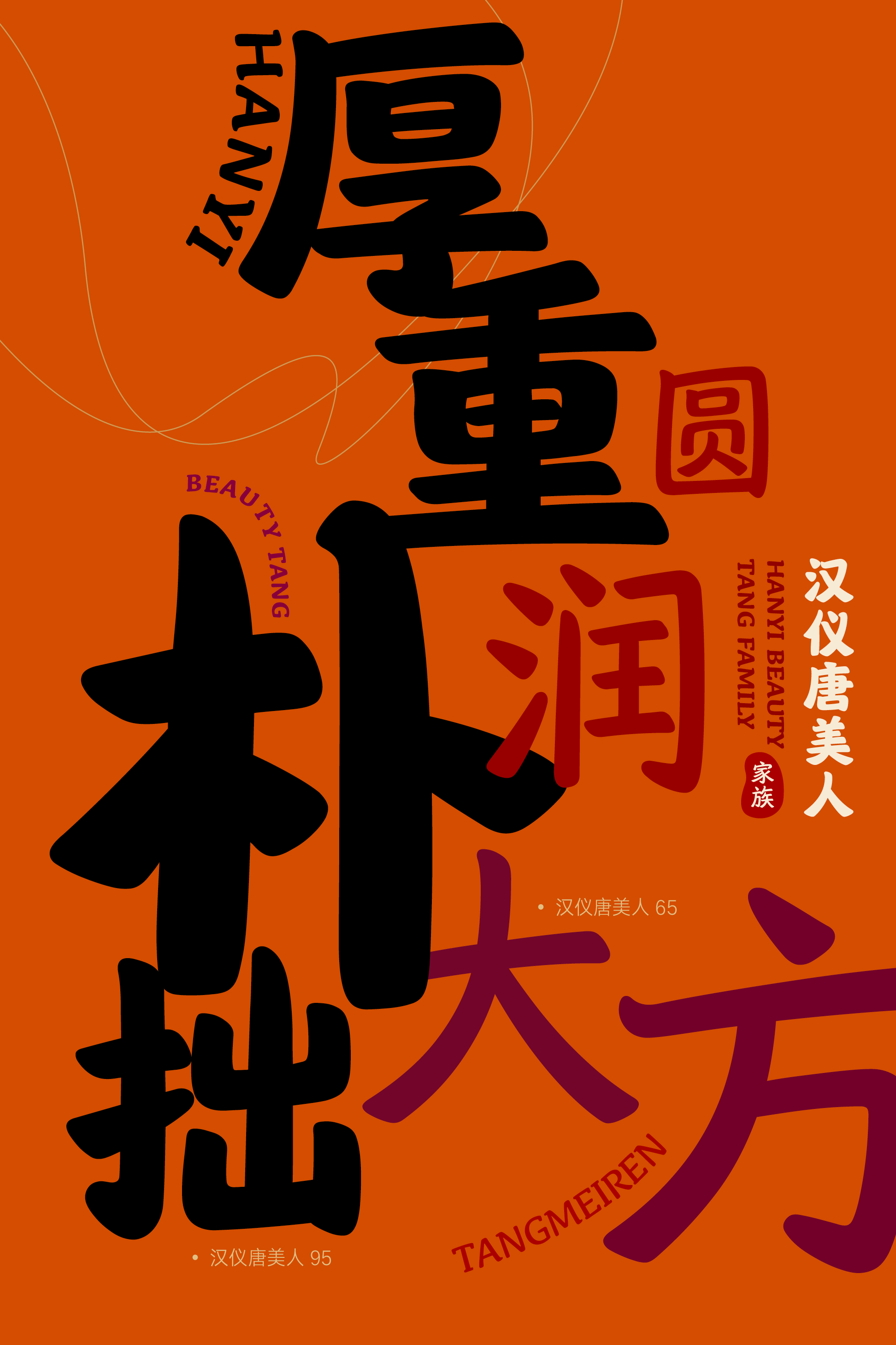 该字体家族共包含7个字重:汉仪唐美人35/45/55/65/75/85/95,满足了不同视觉层级的需求,为设计师的排版提供了更多方案。