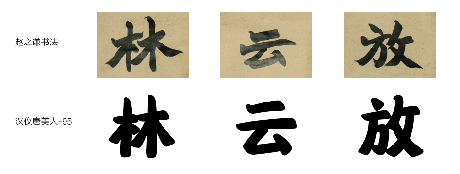 汉仪唐美人家族的灵感源自赵之谦书法,结字方正,犹存隶书意韵。设计师在基于对传统书法的理解上加入了现代审美的时尚感,形成了体态婀娜,举止端庄大方的东方美人形象。