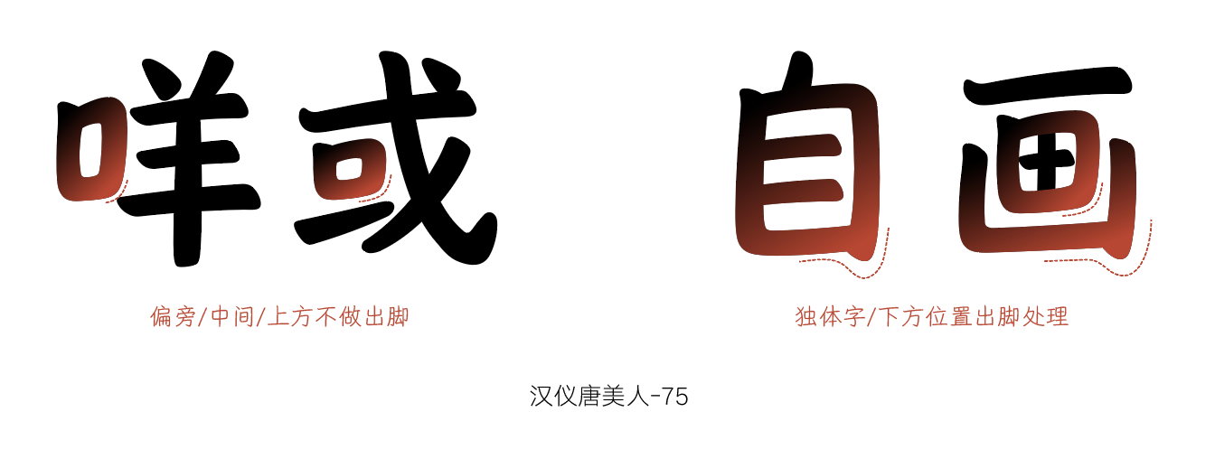 汉仪唐美人家族的横、竖、撇起笔均有顿笔动作。不仅合理的表现了字体的书写性,也增强了其装饰性。