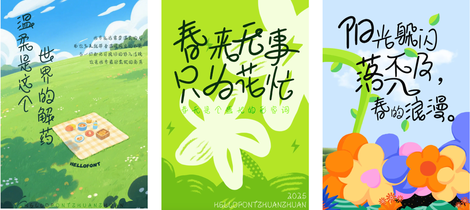 字由锦绣是一款中国风手写体字体,以“繁花如锦,神采挥洒”为设计理念,融合古典韵味与豪放笔意,兼具力量感与手写温度。 方头起笔利落干脆,传递出强劲力量感;承袭“连带或迟或速兼而有之”的书写韵律,诠释“洒脱大气”的风格内核。