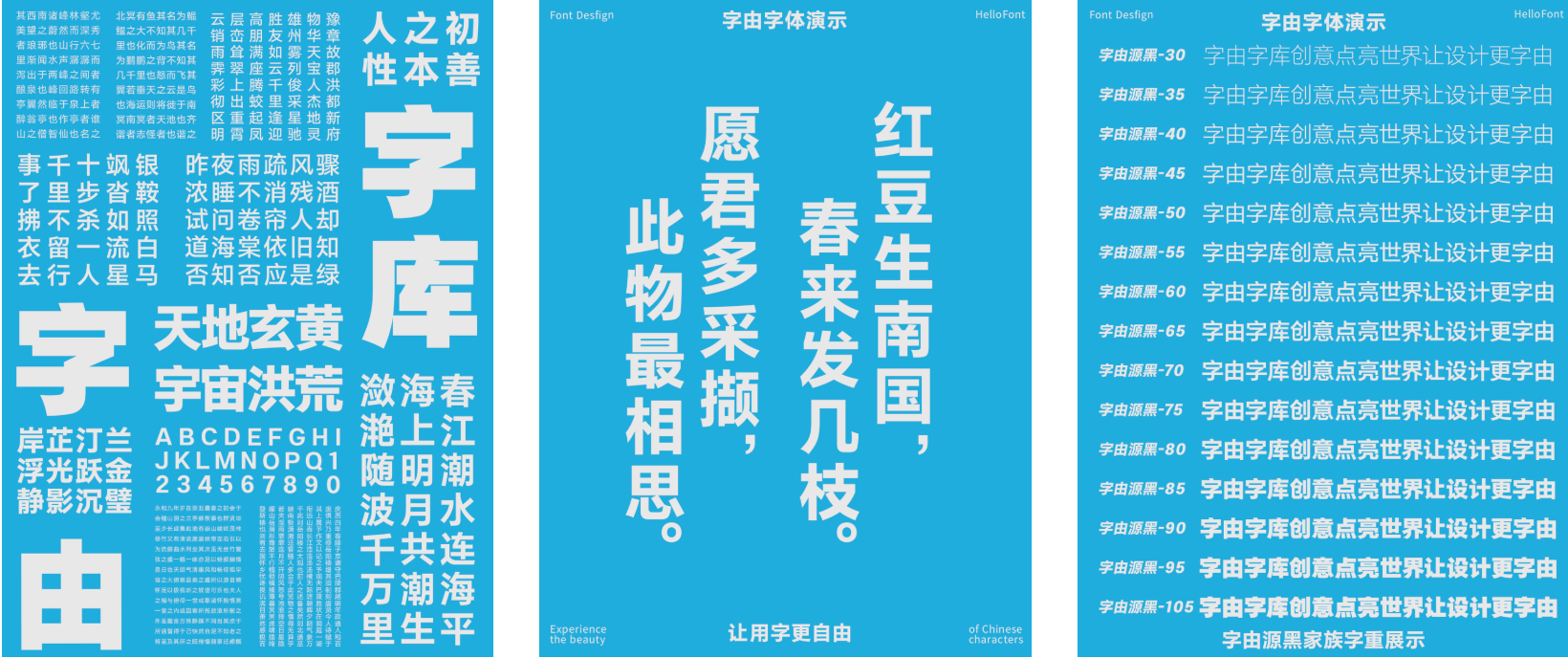 字由源黑家族共有15个字重!字体旨在创造一种兼具历史温度与现代实用性的视觉表达。其核心设计理念植根于对传统印刷美学的致敬与再诠释。 显著特征在于对“老黑体”标志性“喇叭口”元素的精妙融合。 这些微妙的、位于笔画起始或末端的装饰细节,为方正刚健的黑体骨架注入了独特的视觉韵律与人文温度,唤起对经典印刷字体的记忆。 在整体架构上,则严格遵循现代黑体的设计逻辑: 笔画粗细均匀,结构清晰硬朗,中宫开阔,重心稳健。这种现代骨架确保了优异的可读性,尤其适用于屏幕显示与各种尺寸的文本应用。