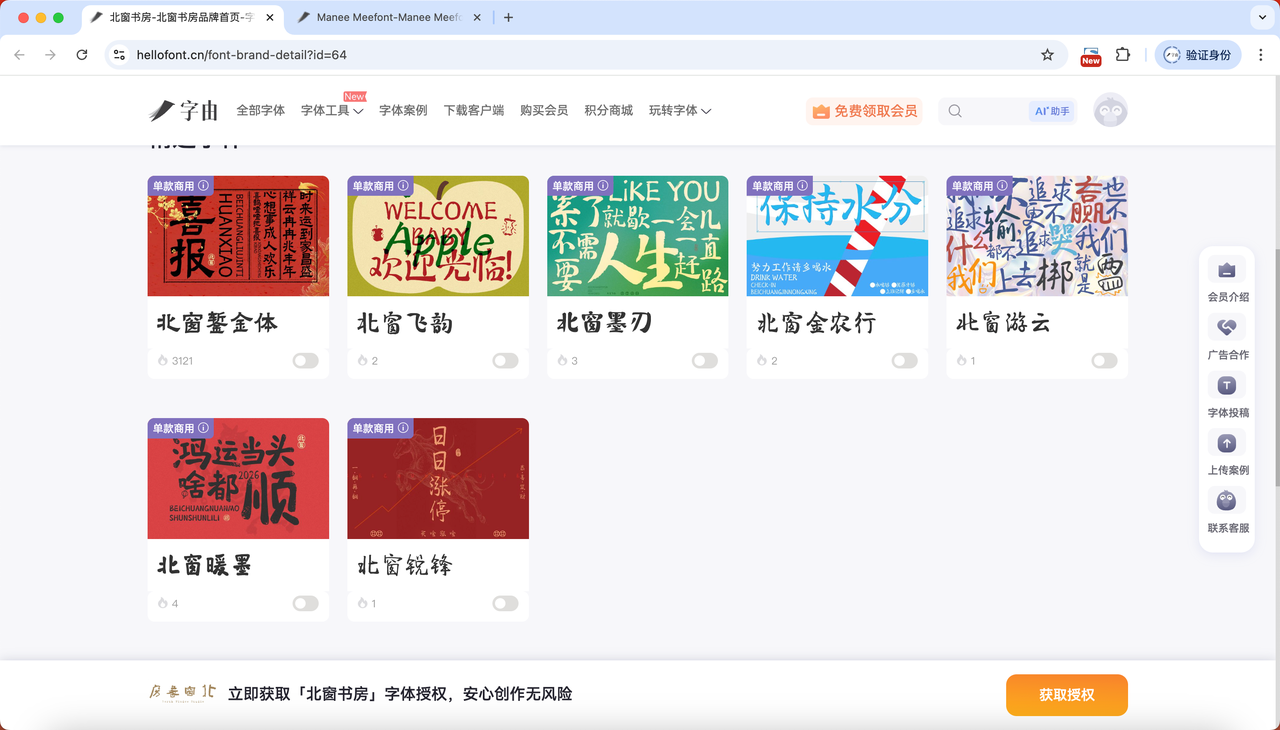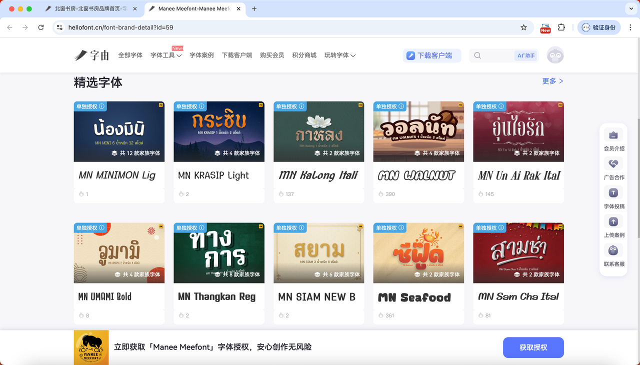 字由字体商城新字库品牌入驻:“北窗书房”与“Manee Meefont”