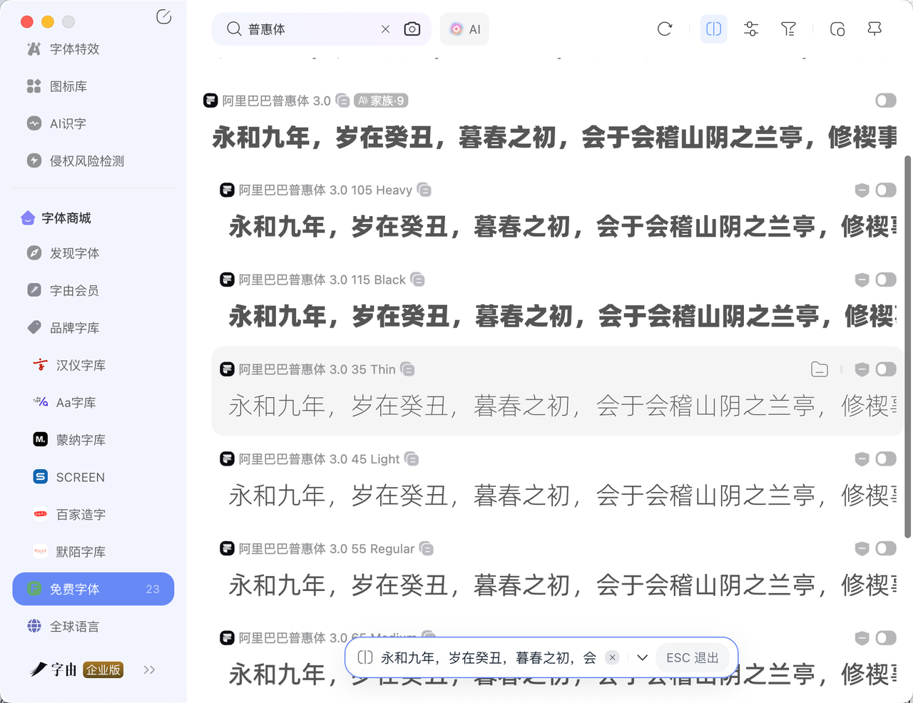 阿里巴巴普惠体是一套全球永久免费正版商用的字体家族,在字由中位于「免费商用」版块,可直接激活使用。