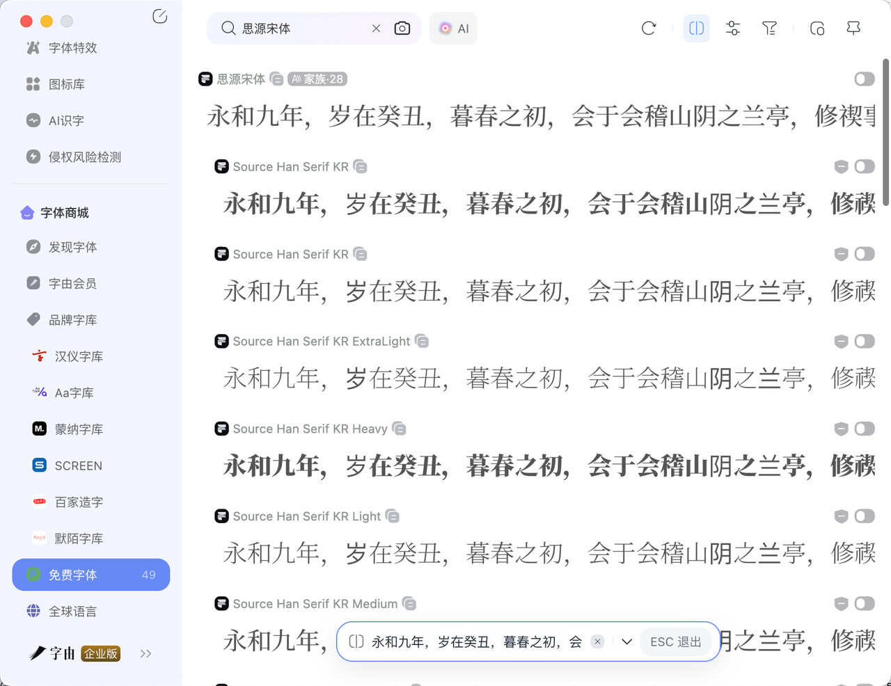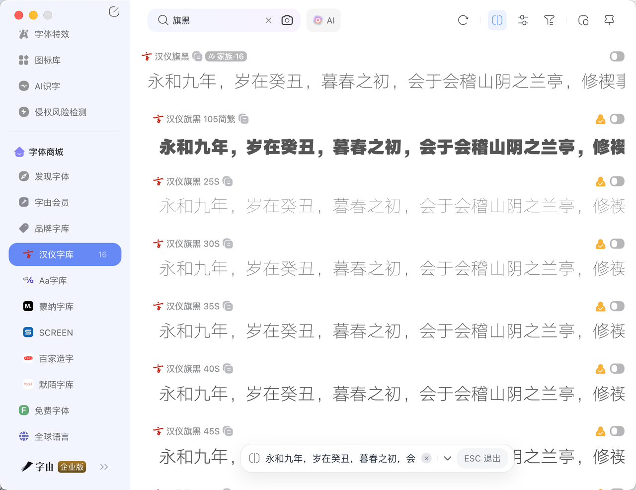 而这也是字由价值所在,设计师可以实时预览字型,建立“企业专用”、“电商标题”、“免费商用”等标签分类字库,告别盲目搜索与手动管理字体包的混乱,甚至可以进行企业团队资产和版权管理,从而提升设计效率。