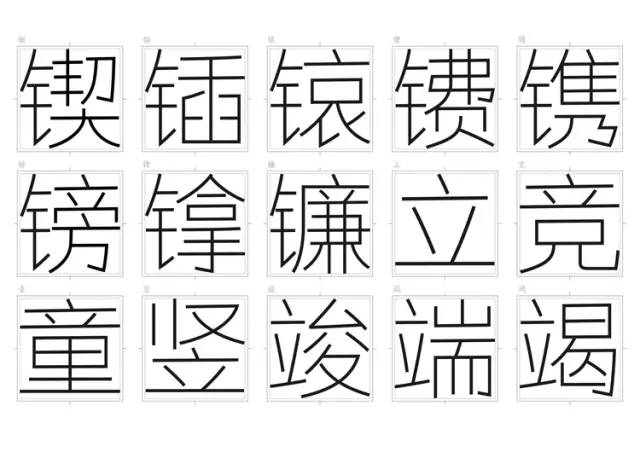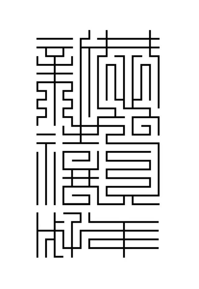 之后我设计了《六字黑体》,对我来说堪称一次“凶险”的自我挑战。整个过程与其说是写字,不如说是一场永无尽头的拼图游戏,与规范庄重的《元隆黑体》形成鲜明的字型对照。看似字体最突出的部分是奇特、有趣的笔形塑造,其实结构设定才是重中之重。笔形造型规范用去三天时间,而结构系统的设定却用了两个月之久。既严谨又随性的结构规律源自我长期从事图形和标志的设计心得和构成标准。全部6763个字都是以设计图形标志的标准和方式处理和加工。模块式的笔形衔接方式和固定的笔形单位造就了《六字黑体》独有的、不可复制的拼图式间架结构秩序,笔形与笔形之间既有险要和灵动,也有坚实和平稳。机械单纯的笔形游动在特定的间架结构的限制之中,呈现出丰富多彩的图形拼接式样,也流露出了我对未来汉字字体设计方向的思考。