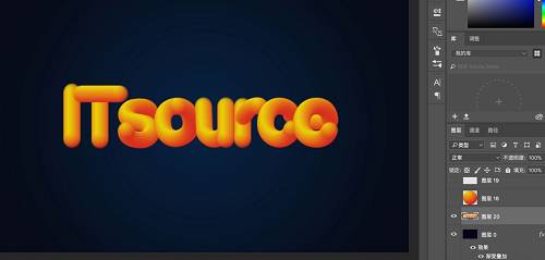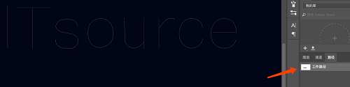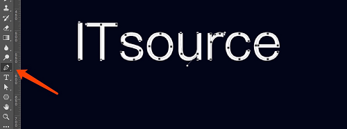 2、字体路径制作: 新建图层,输入“ITsource”,用钢笔工具描出路径