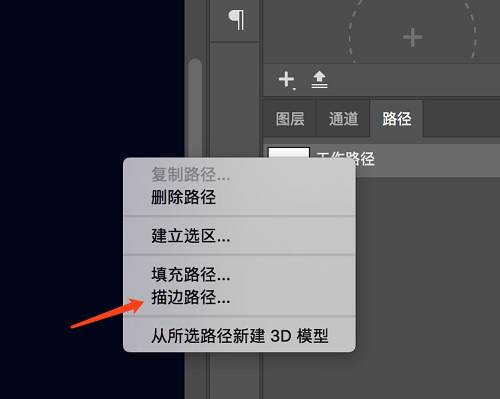 画笔选好之后,返回到刚才我们说到的工作路径,点击鼠标右键,选择描边路径(这里需要说一下,在选择描边路径时一定是要在新建立的图层上选择画笔工具才能使用)