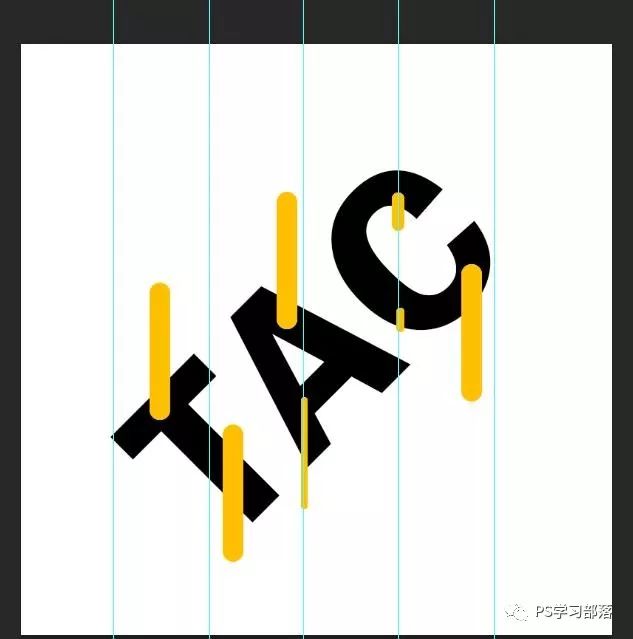 2、然后我们ctrl+t旋转-45度,然后拉出等分的五条参考线,如下图所示: