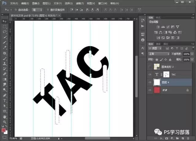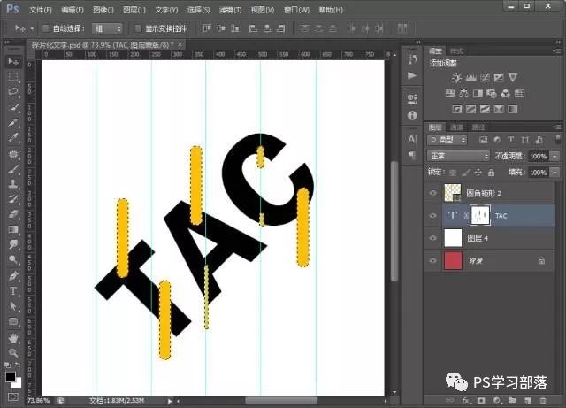我们给TAC文字部分加一个图层蒙版,然后按住Ctrl键,点击刚才合并的形状,在蒙版上填充黑色。