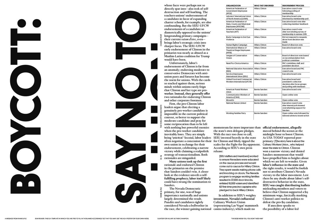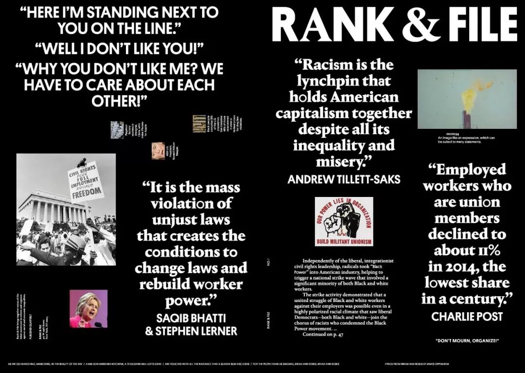 设计师的理念是「《排名和档案》坚持以工人运动的激进声音为中心,突出工人在工作场所中的个人经历。作为各级工会成员的平台,它创建了一个由工人,工会领袖和政治活动家组成的社交网络,使他们能够参与讨论并各种观点。
