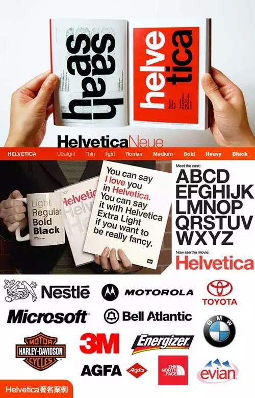 还有影响世界的Helvitica,被大量使用在标志、电视、新闻标题以及无数的商标。如:3M、英特尔、无印良品、雀巢、松下、Microsoft等数百间主要企业都是使用Helvetica字体。