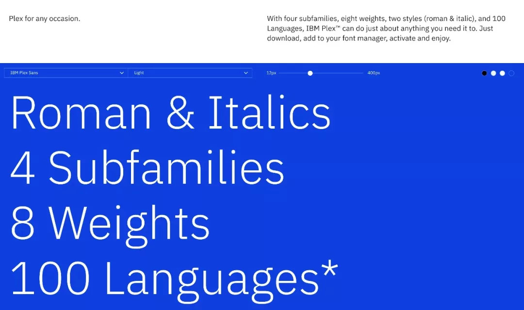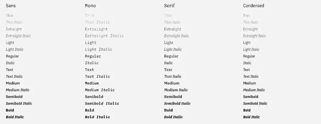 字体家族/系列:IBM Plex™ Sans,Mono,Condensed和Serif