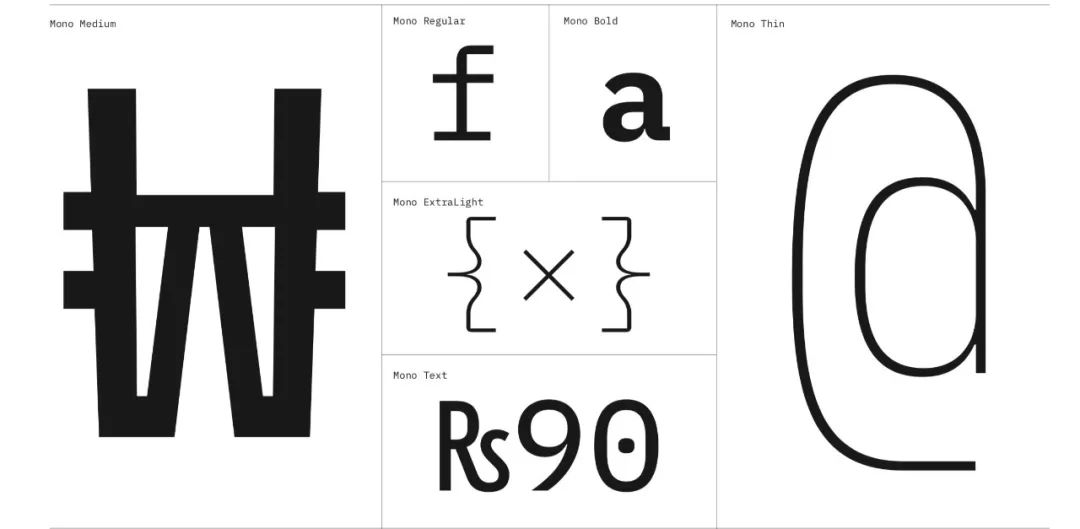 双层a和g引用了一种人文主义思想,同时又没有失去Plex Grotesque整体现代(亦兼具现代主义)的特征。它展现了理性与人性之间的平衡,而非人文主义。