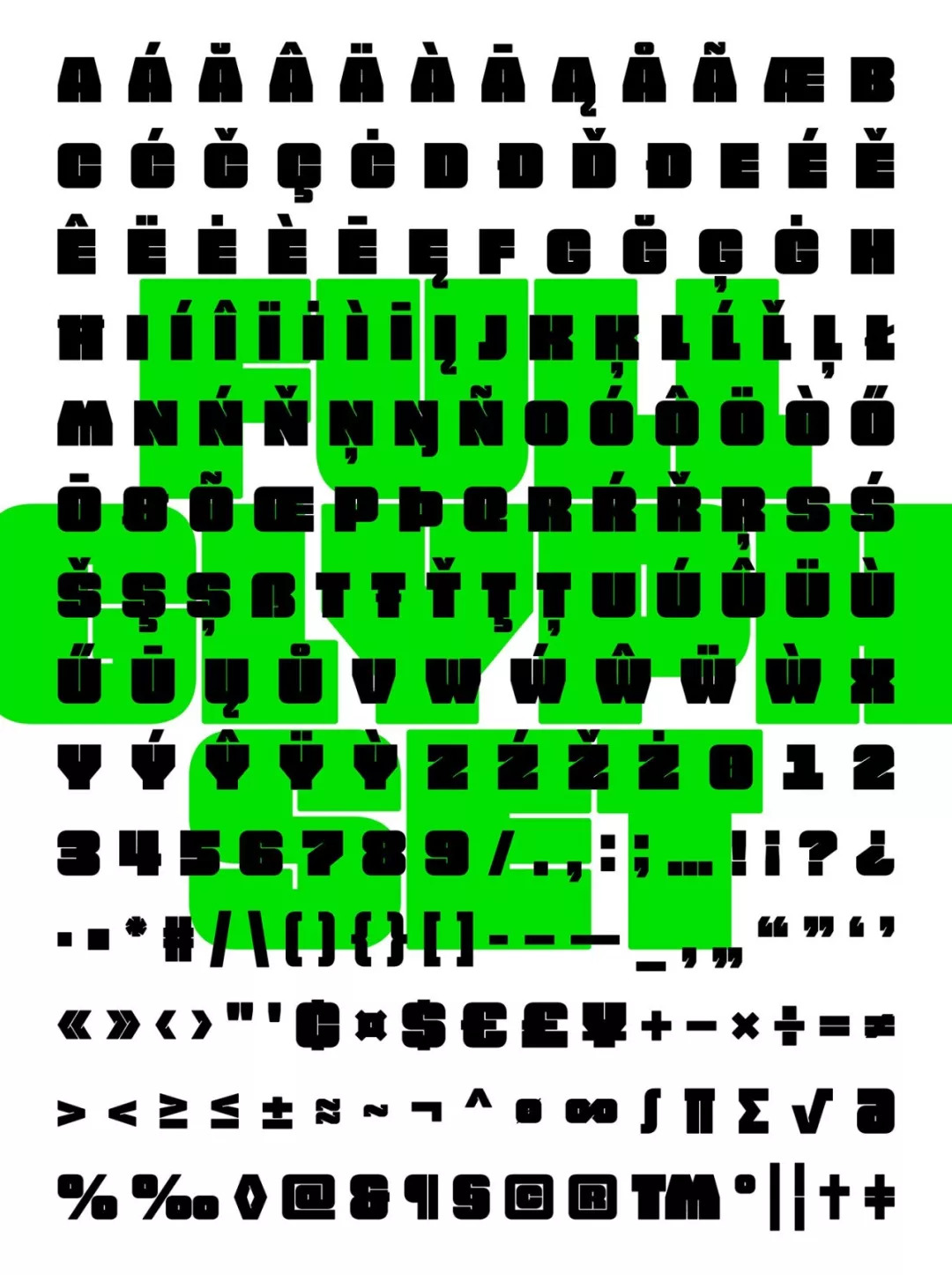 这款字体具有极粗的字重和许多独特的字符,仔细观察看看,这些字符非常有趣。