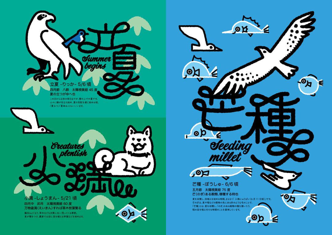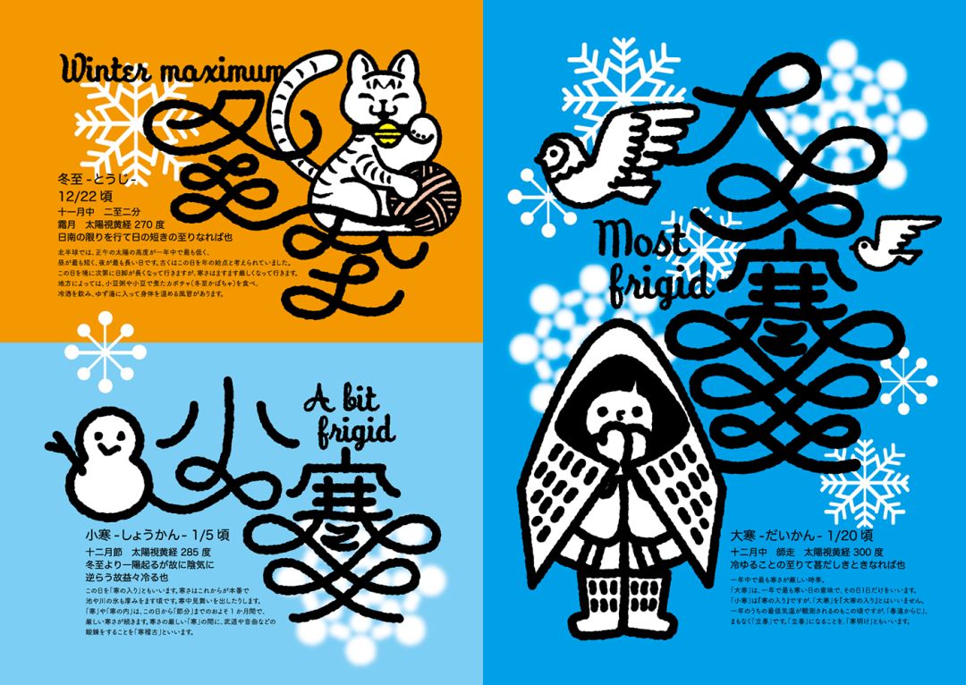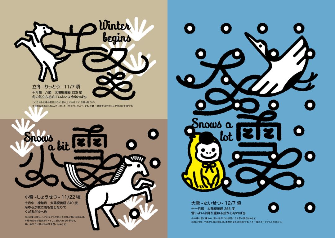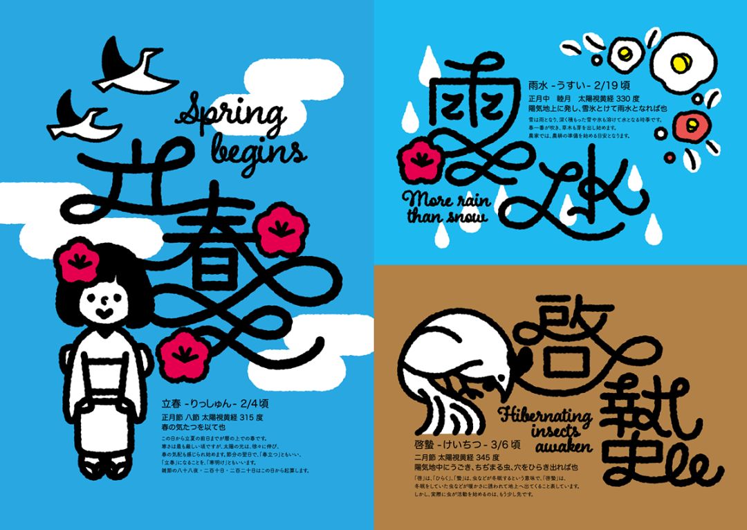 日本设计师 tsuruko kameyama ,他从另外一个角度来诠释二十四节气,插画和字体设计别有一番趣味。一起欣赏下。底部会有国内设计师关于二十四节气的字体设计诠释作品。