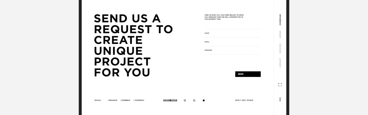 你可以在排版、几何形状或 3D 渲染,创建一个不对称的视觉效果,记住用户首先会看到较大的元素。