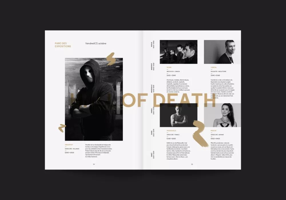 即使色彩用的是简单的黑白金,但穿插在无衬线的字体之间,也非常吸引眼球。