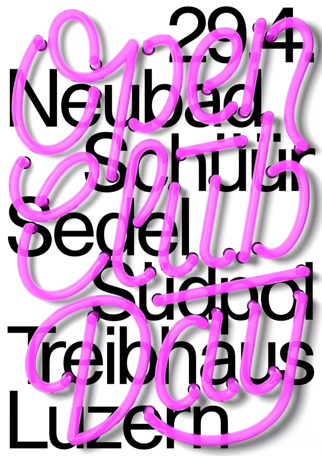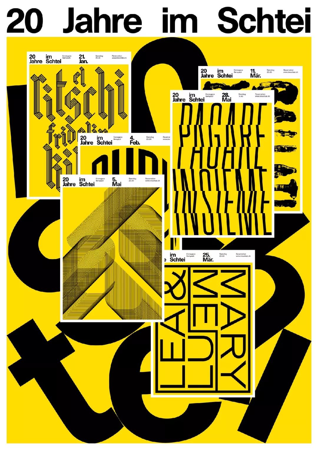 同为瑞士的设计师,但来自卢塞恩的ErichBrechbüh,跟之前的大相径庭,他喜欢把字体打碎、重组,再用不同的介质去呈现,非常巧妙!