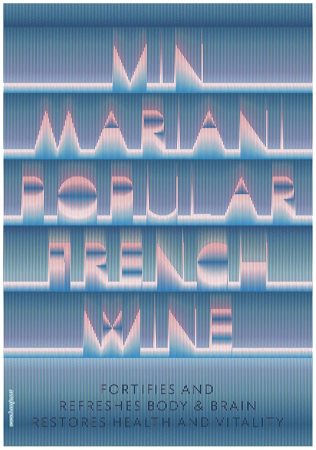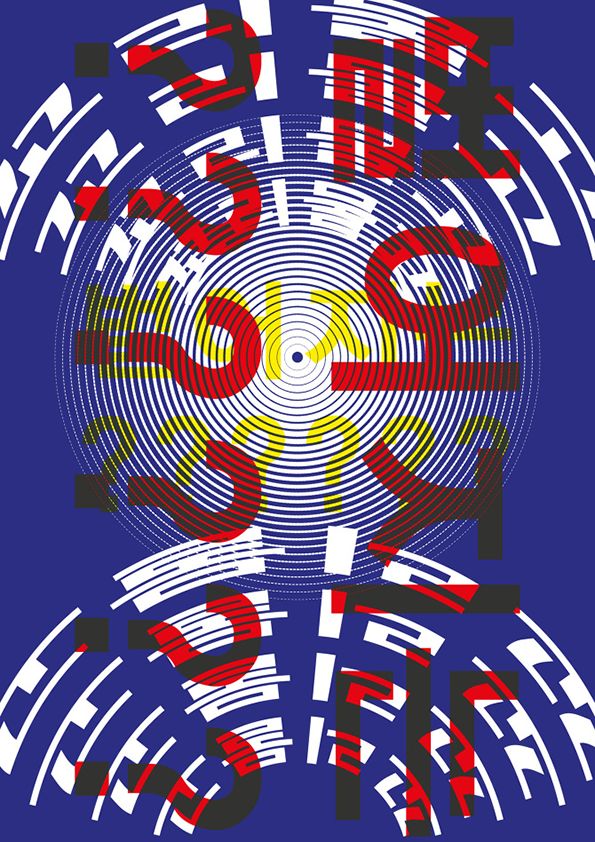 海报在街头的视觉效果,远看是一些抽象的几何笔画,近看才知道是字体。