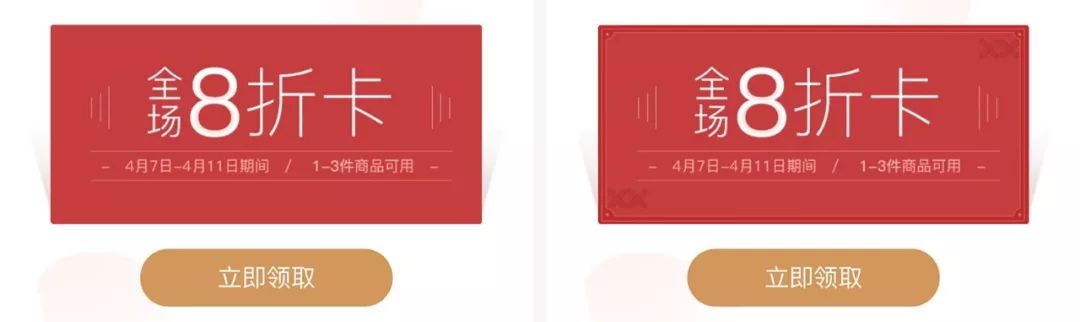 线框还有另一种直观的作用,即增强画面的细节感、设计感,大到页面、小到优惠券、按钮,比如: