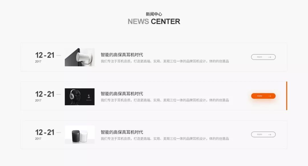 每条新闻都加了一个1像素的矩形线框,且为了不影响主体的表达,都做了透明处理,提升了每条的整体性和独立性,看起来条理更清晰,画面更整齐!