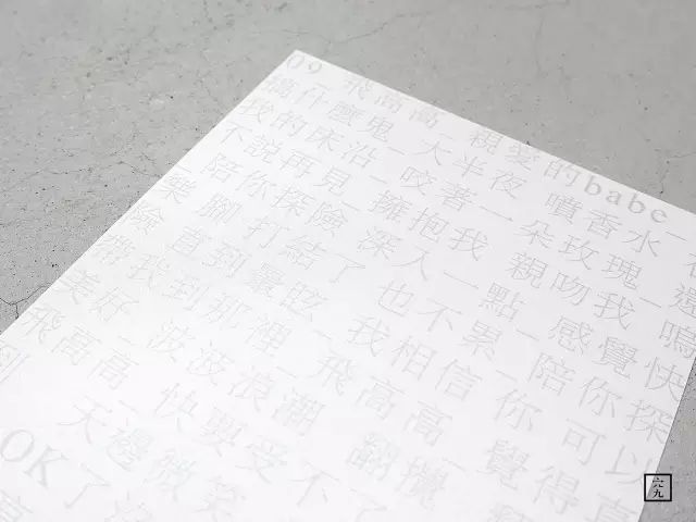 有亮面,珍珠,夜光白……十几种白,每个上面的文字编排,还都跟歌词有关。
