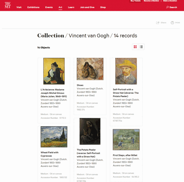现在好了,只要进入网站,就能随时随地逛,在The Met Collection页面,还有406,000件高质量图像数据,供你搜索下载。