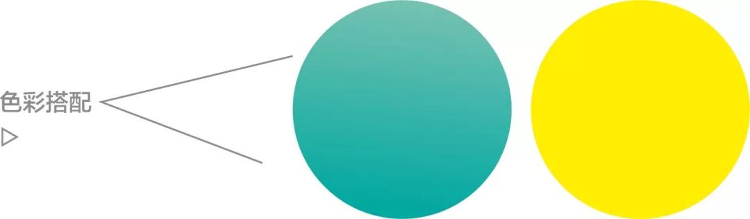 色彩搭配上,蓝绿色搭配明黄色,蓝绿色寓意运动的健康与纯净,而明黄则寓意活力与激情,并且属于对比色搭配方式,主题视觉更为醒目。同时背景色采用了渐变形式的蓝绿色,突出场景的空间感。