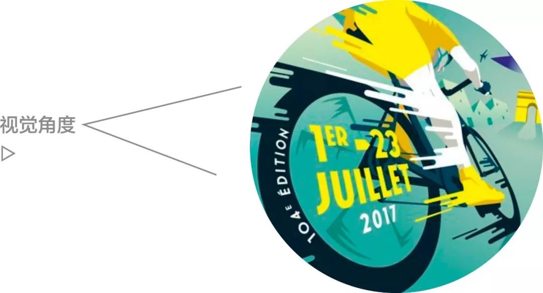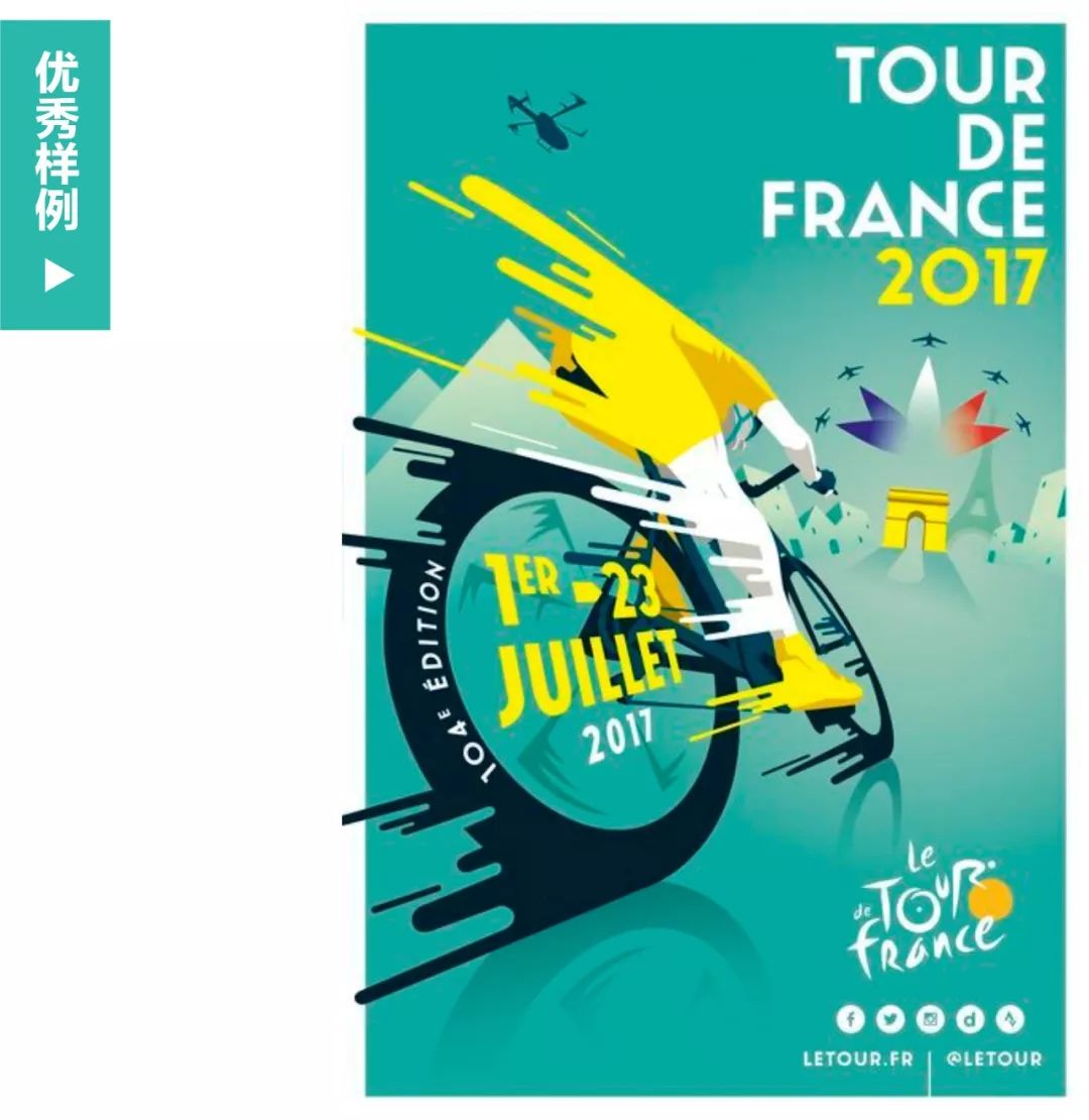 上面的海报是骑行运动类的项目,风格上采用的是插画手绘形式,在气质上更偏激情,活力。首先在画面主体的选择上选择了一个比较有张力的透视角度,视觉效果很棒。