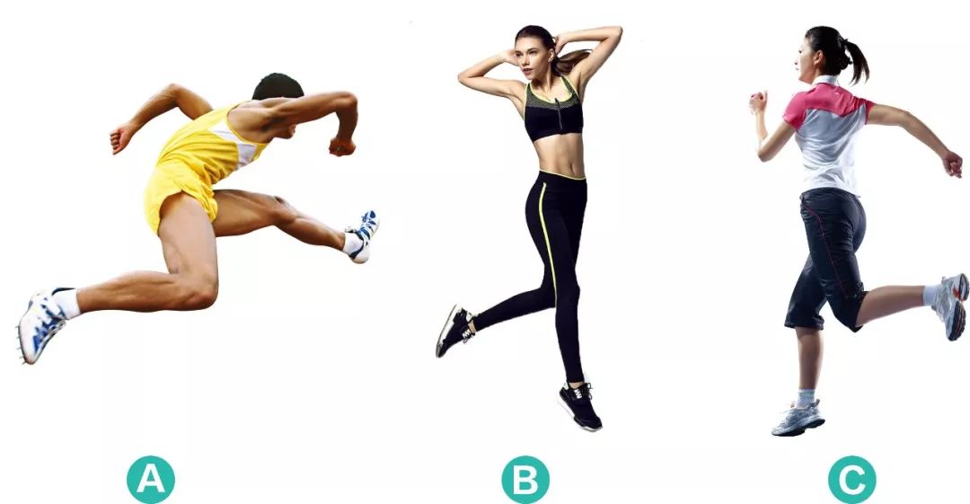 通过上面作品的分析,我们在网上找到如下三个不同的运动图片,根据三个人的形态可以得知A图更加合适,主体人物张力最大,所以选择A图。