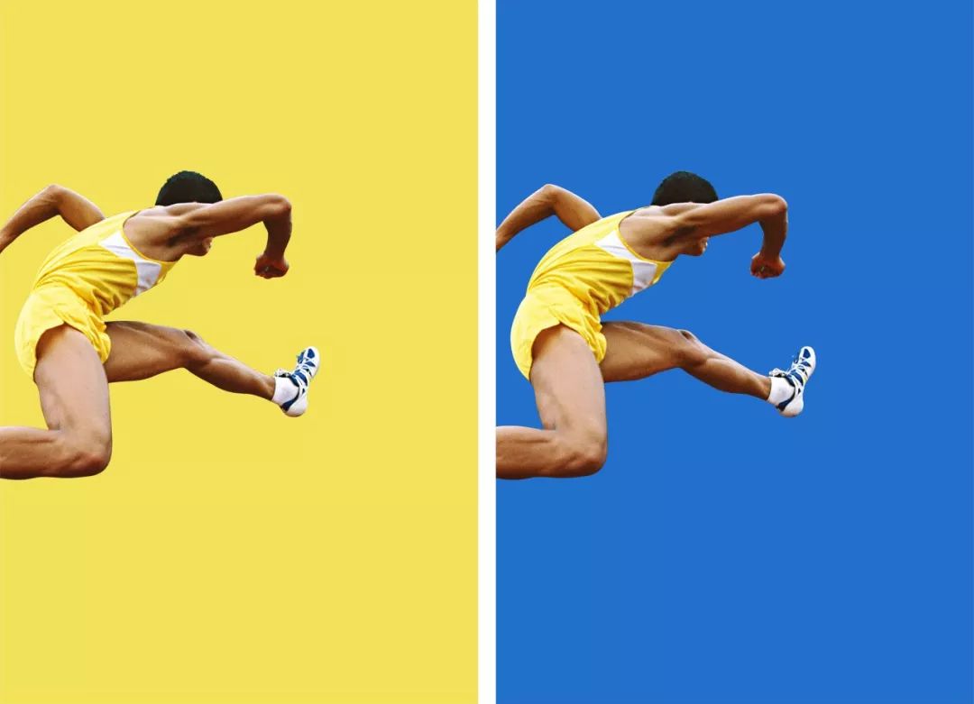 尝试使用同类色和互补色进行色彩搭配,同类色(背景黄色)搭配统一性较强,但是视觉感不强烈;互补色(背景蓝色)搭配则色彩碰撞,对比性强烈,表现力更好。