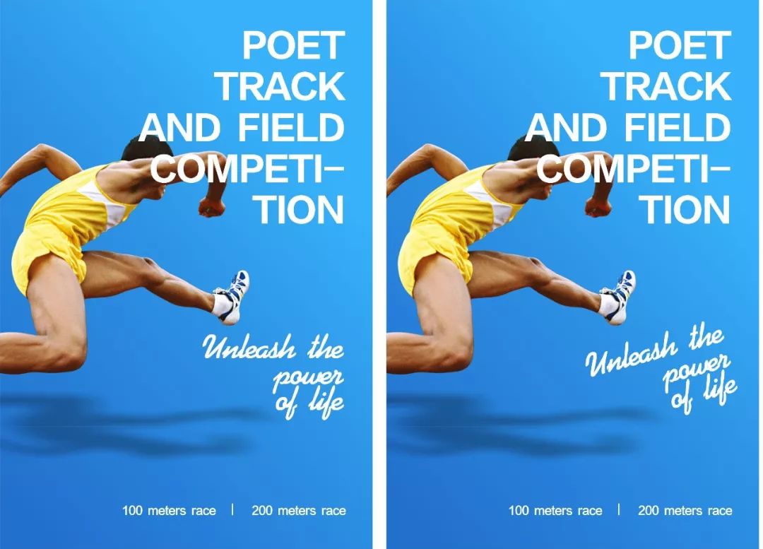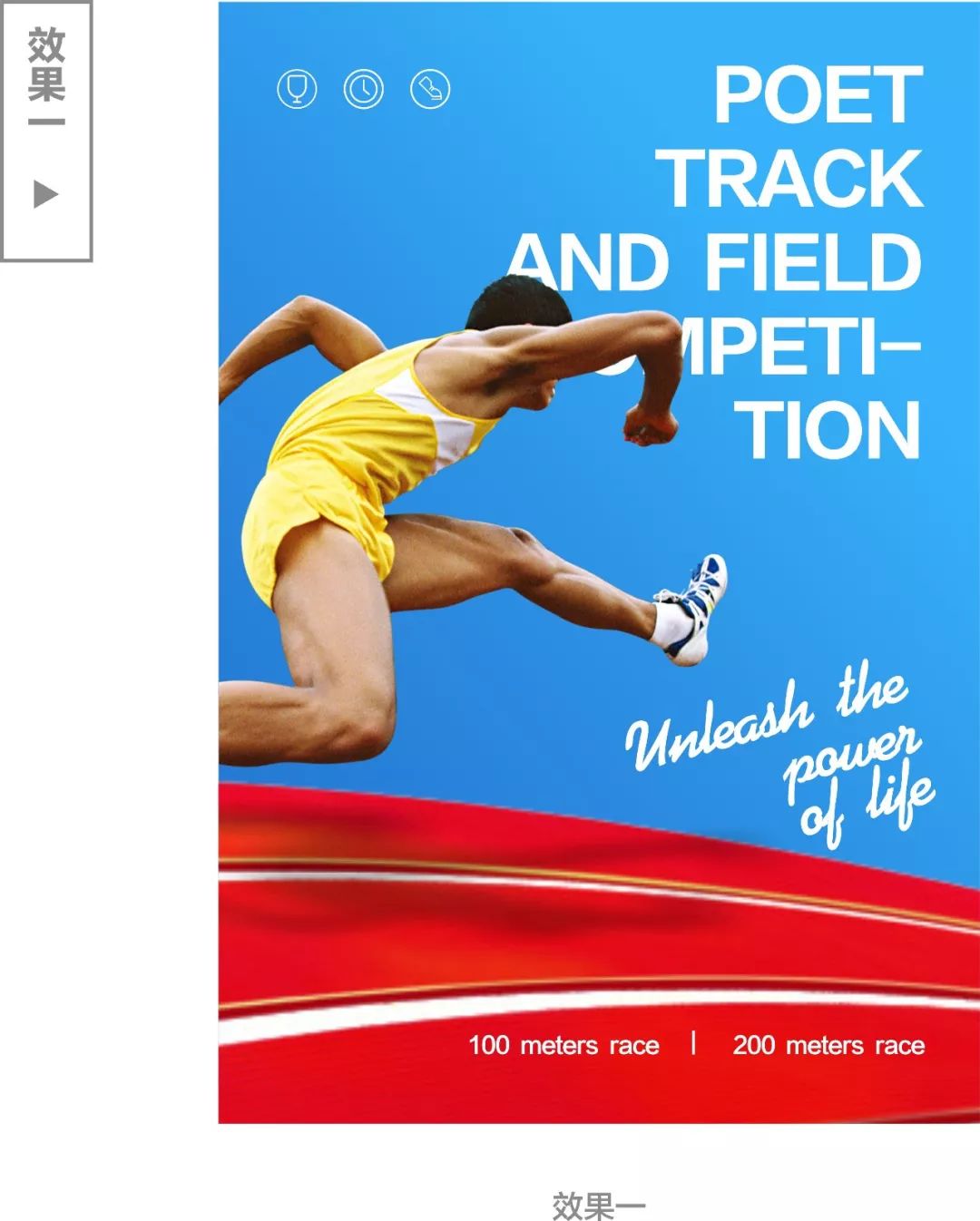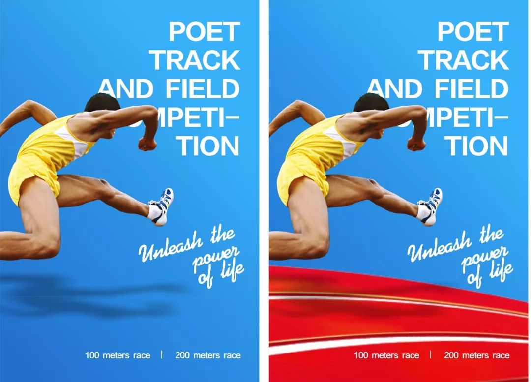 将主标题的位置进行调整,叠压在人物下方,形成前后的空间,人物和主标题之间形成位置上的关联,整体性更强。再为画面背景添加上一个跑道,视觉上更具备空间延续感。