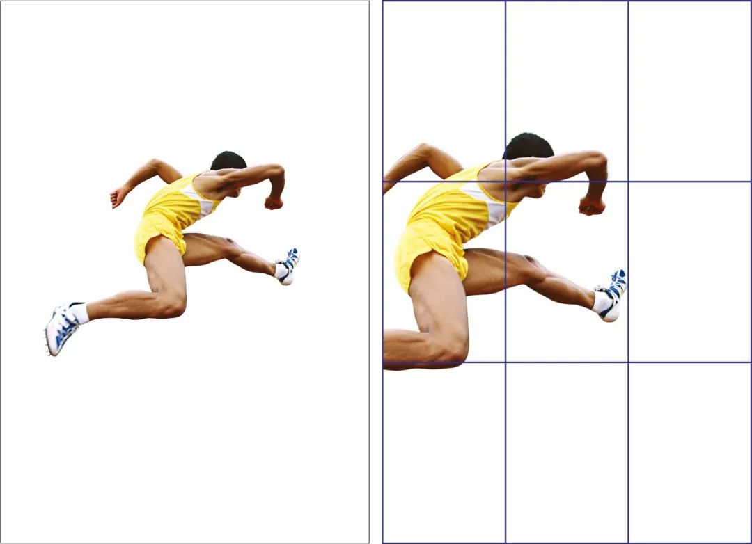 新建一个画布,将图片放置其中,图片小的话视觉效果比较平均,所以将图片放大,利用九宫格形式确定人物的大概位置,这样主体人物的形态趋势就会使画面比较有张力。