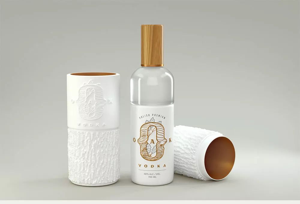 浮雕的设计在包装中,显得比较高档,多用于酒类,像这个历史悠久的伏特加。