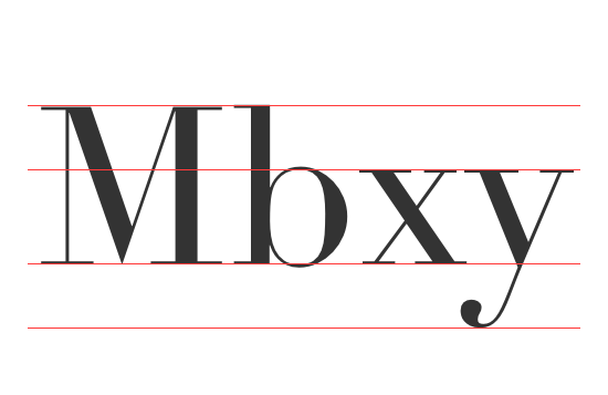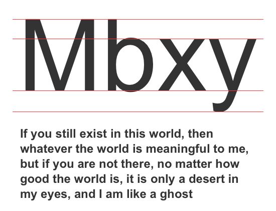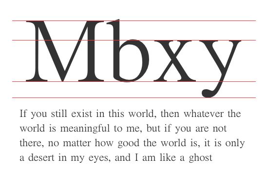 以小写字母“x”的高度为“x高”,“x高”决定这套字体的整体大小,小写字母的高度的平均发布也会影像文字的阅读。