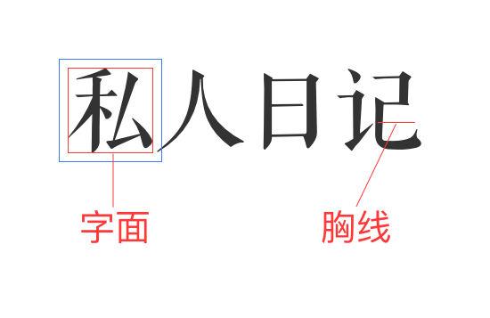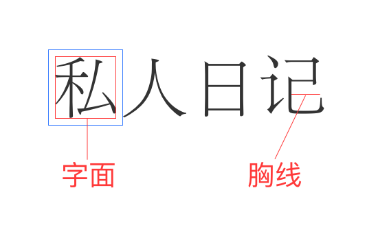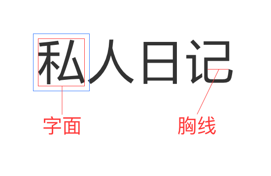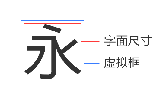 格子分为“虚拟框”和“字面尺寸”,“字面尺寸”也会随着不同的字体而有所变化。