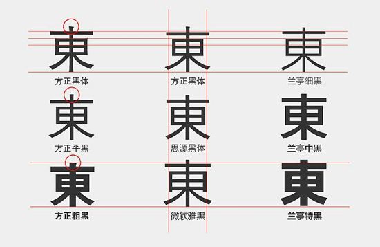 在很多中文字体中,按照“腰线”使用“W6”这种标注方式,数值越大,腰线差异越大。
