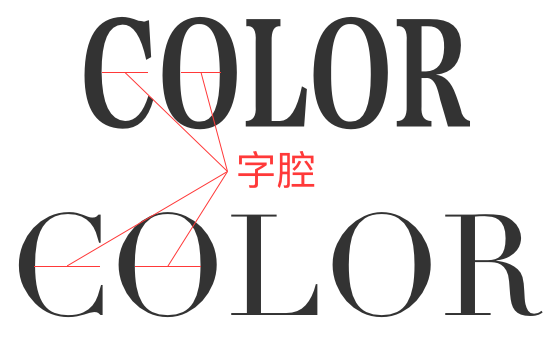 像是“C”“O”这个类的字母中间的空间被成为“字腔”。字腔较宽的字体就会给人开放、轻松的感觉,相反,字腔较窄的字体就会感到非常密集,也会感觉更有力量。