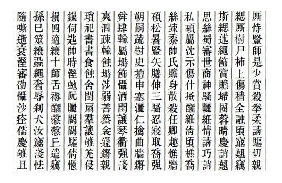 竖线粗、横线细,在笔画结束处有一个类似三角形、名为“鳞”的装饰,这种字体称为“宋体”。