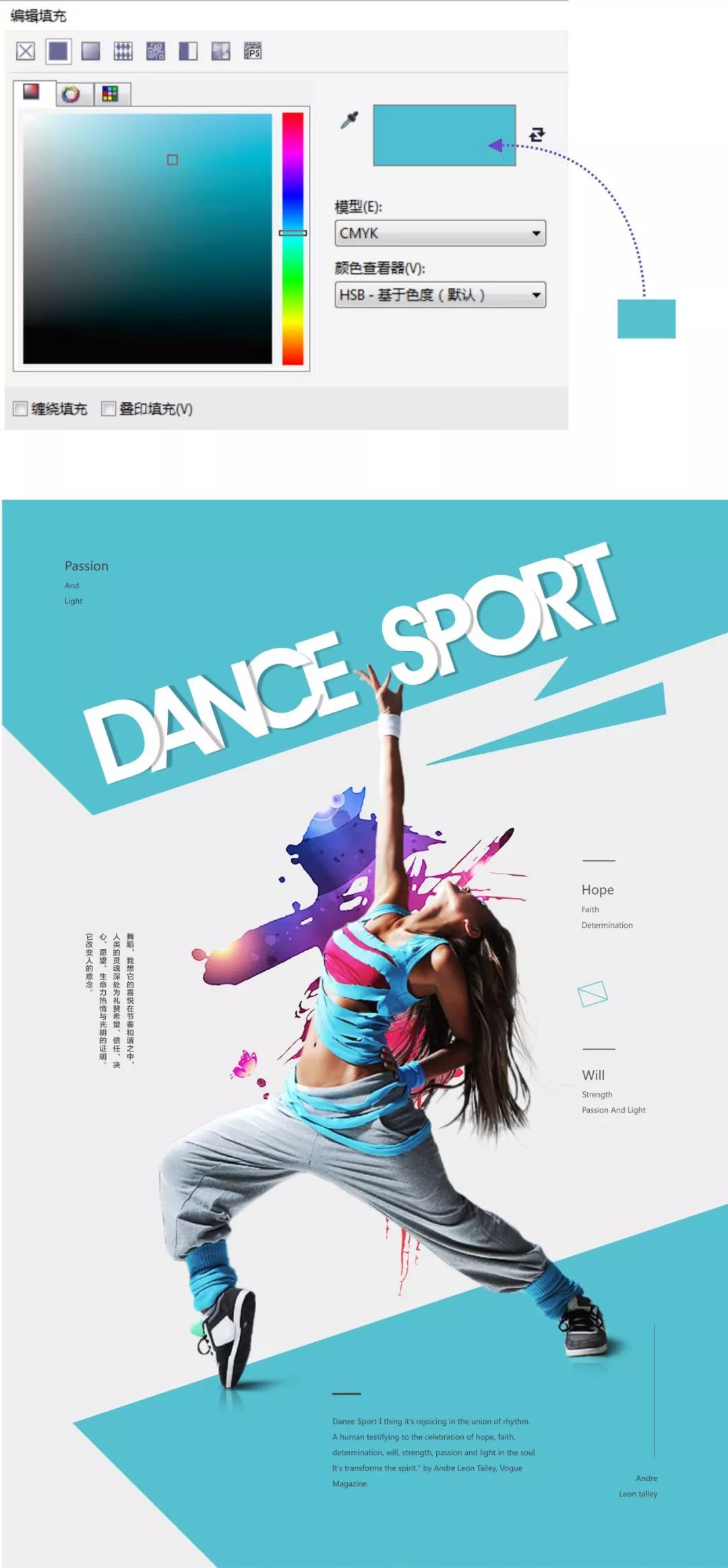 最后运用对比色的渐变,形成空间上的撞色,更加凸显主题。以此类推,面对不同的设计项目,都可以灵活运用平衡法则去构图。
