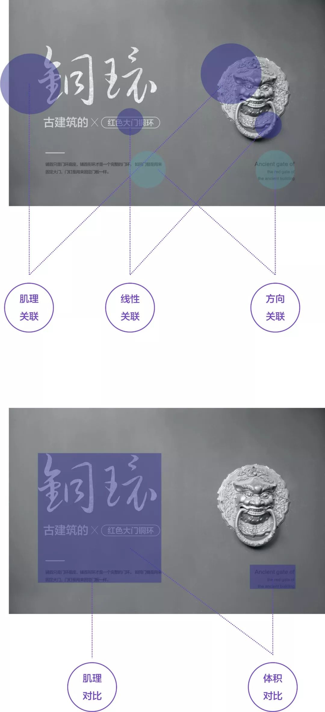 要素关联:通过分析,我们可以将“铜环”与右边的铜环,建立起肌理上的关联。