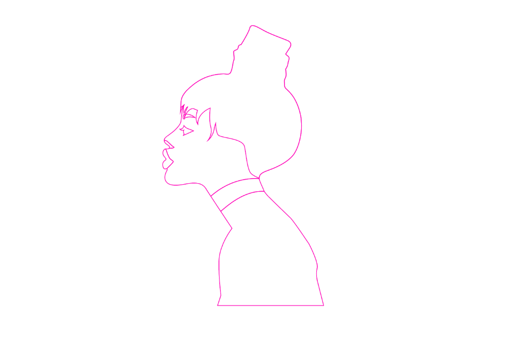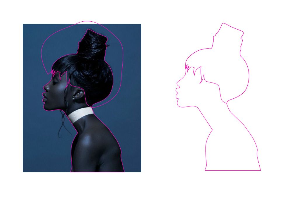 顺着人物的轮廓,使用【钢笔工具】描摹,最好采用高亮色,这样能随时看到线条,与背景区分。