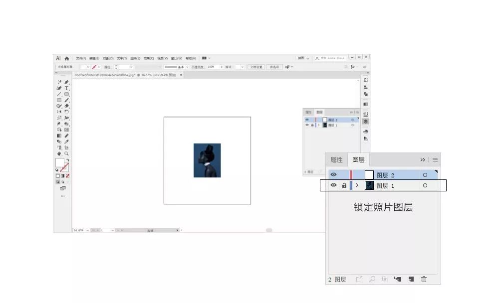 我们将素材拖入到 AI 当中,新建一个图层,照片图层可以锁定。