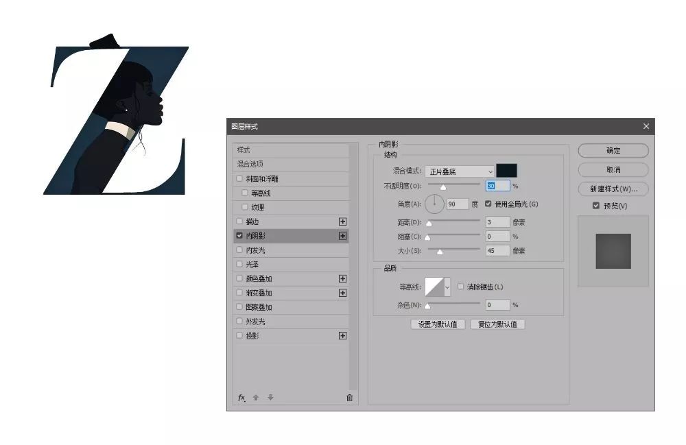 为了让字母更有实体感,我们可以给它增加【内阴影】。