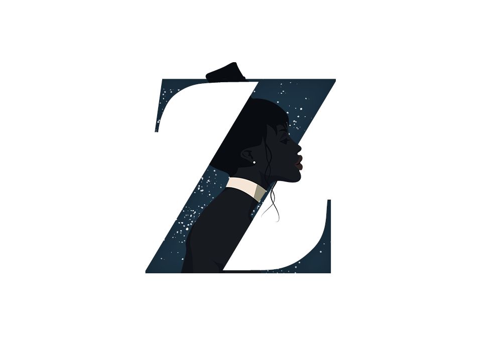 和字母组合,首先要看到背后的骨架,然后选择和人物呼应的部分,这里我选用Z。